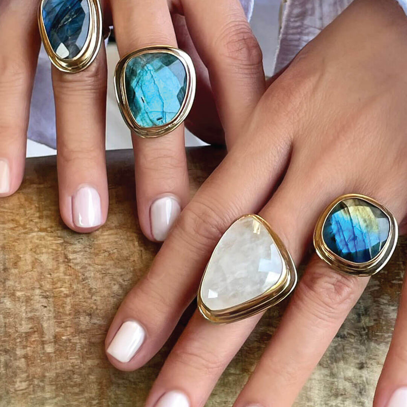 Agot Costa Rican Design Handcrafted Sterling Silver 925 & Triple Semiprecious Stone Ring Size 7