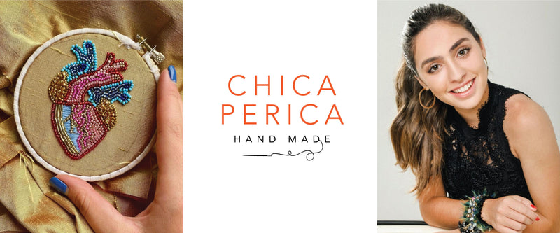 Chica Perica Costa Rican Design Handcrafted Embroidered Anatomical Heart Long Necklace & 27"- inch Labradorite Single- Strand Chain